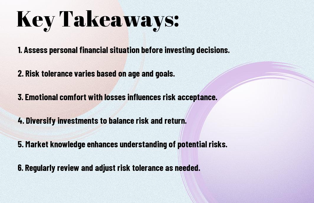 Keep in mind that understanding your risk tolerance involves more than just numbers; it incorporates your emotional and psychological responses to investing. Your feelings about market fluctuations can significantly influence your decisions, pushing you toward more conservative or aggressive choices. Recognizing these behavioral aspects can help you align your investment strategy with your actual comfort level.