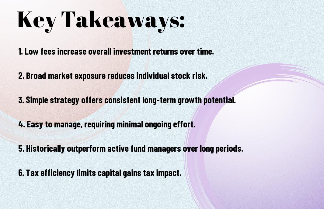 Summing up, investing in index funds can provide you with a cost-effective way to build your wealth over time. By diversifying your portfolio and minimizing fees, you can enhance your investment returns while taking a hands-off approach. This strategy empowers you to gain exposure to the broader market, which can be beneficial for your financial growth. For a deeper understanding of this investment strategy, check out The Pros and Cons of Indexes.