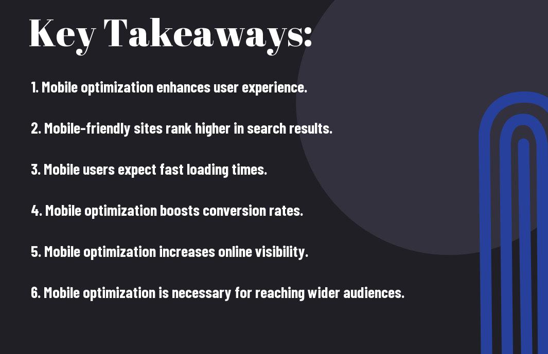 Optimization plays a pivotal role in ensuring your internet promotion strategies are effective and reach the right audience. In today’s digital era, you simply can’t ignore the significance of mobile optimization in your online endeavors. Your potential customers are constantly engaging with content on their mobile devices, and if your website or promotional materials are not optimized for mobile, you could be missing out on valuable leads and conversions. Let’s research into why mobile optimization is a non-negotiable aspect of successful internet promotion strategies.