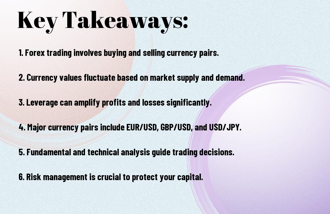 There’s a world of opportunity in Forex trading, where you can buy and sell currencies to capitalize on market fluctuations. As you venture into this dynamic financial landscape, it’s imperative to grasp basic concepts such as currency pairs, leverage, and market analysis. This guide will provide you with a foundational understanding, enabling you to make informed decisions and navigate the Forex market effectively. With the right knowledge and approach, you can improve your chances of success in this fast-paced trading environment.